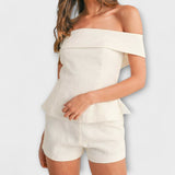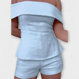 Olivia - Conjunto de Dos Piezas de Algodón y Lino Blanco