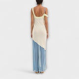 Descubre la combinación perfecta de elegancia y estilo moderno con el vestido midi Thames Splice. Esta impresionante pieza presenta una silueta contemporánea de slip, confeccionada en chifón ligero y semitransparente en un elegante diseño de corte en Ecru y azul.